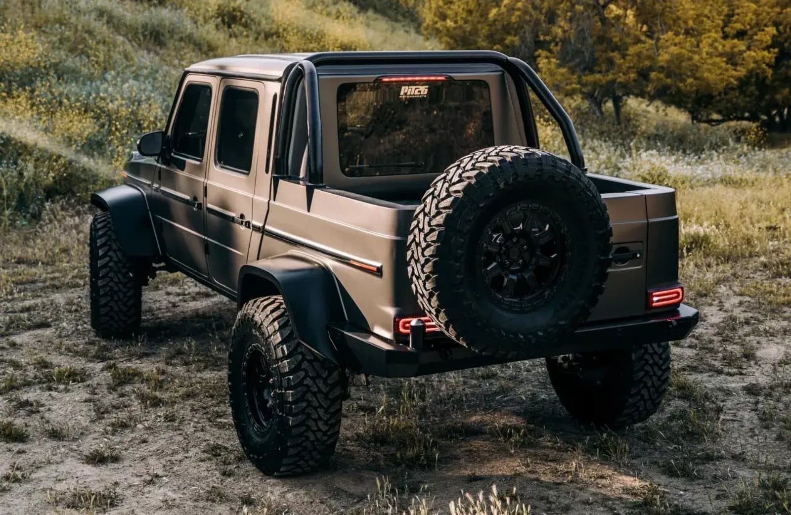 Ponen la guinda del pastel la pintura mate y un juego de llantas en tamaños de 18 o 20 pulgadas. En ambos casos están calzadas con neumáticos Toyo de 38 pulgadas. Los cambios dan como resultado casi 229 milímetros más de distancia al suelo. Pese a ello, el modelo conserva su «geometría de dirección y ángulo de suspensión a nivel de fábrica».