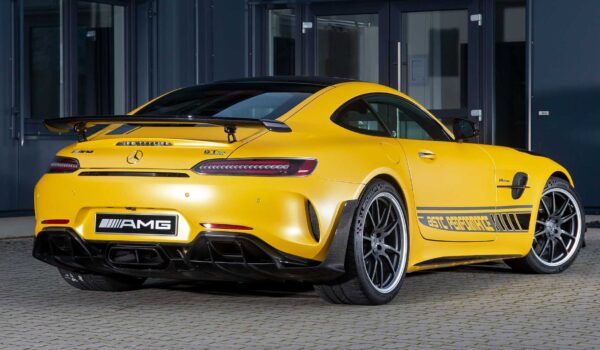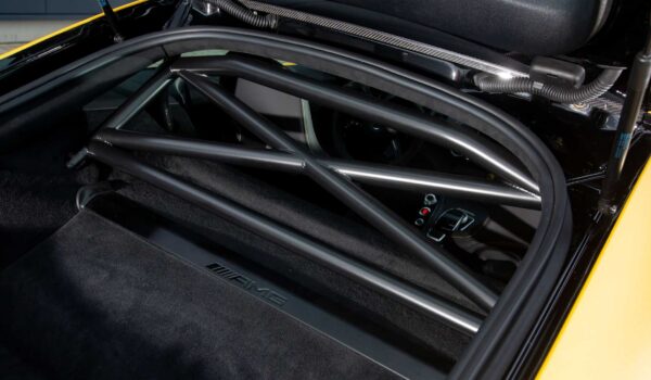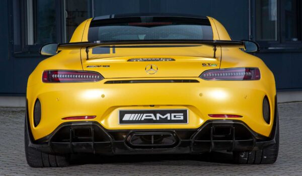 Por su parte, el difusor de fibra de carbono se expande hacia los lados, al tiempo que en la zaga se incorpora un alerón fijo. Las llantas forjadas AMG Performance también son del AMG GT R Pro y están calzadas con neumáticos Michelin Pilot Sport Cup 2 en dimensiones 285/30 R19 en la parte delantera y 335/25 R20 en la parte trasera.