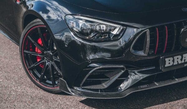 Destinado al pináculo de la gama, el Mercedes-AMG E63, el paquete del especialista equipa un spoiler delantero que mejora la eficiencia aerodinámica, nuevos marcos para las entradas de aire laterales, LED integrados en el paragolpes trasero, un difusor más provocativo y nuevas colas de escape. Brabus también está ha trabajado en un alerón de carbono para la tapa del maletero.