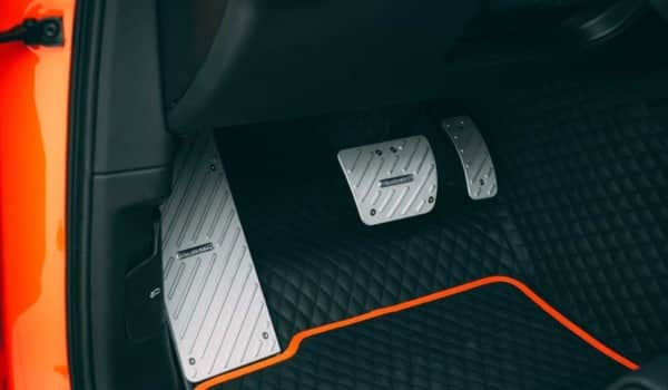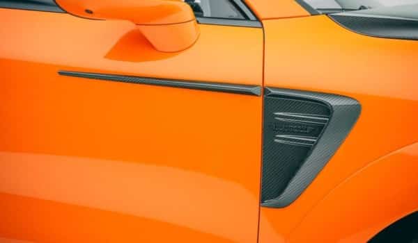 En la zaga, la combinación de la fibra de carbono con unos colores tan vivos en la carrocería le dan un aspecto un tanto peculiar, al tiempo que el alerón, el spoiler de la tapa del maletero y la doble salida de escape desvían nuestra atención. También el techo es de fibra de carbono, junto con algunos elementos de los laterales.