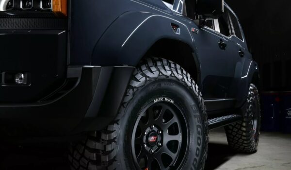 Las modificaciones en este Toyota Land Cruiser LC250 arrancan con una suspensión ajustable en dos direcciones que cuenta con nuevos muelles y amortiguadores. A ella se suman unos enormes neumáticos de 37 pulgadas firmados por BFGoodrich. Calzan unas llantas de aleación forjada de 17 pulgadas con acabado en negro satinado que le dan un aspecto de Bigfoot muy convincente.