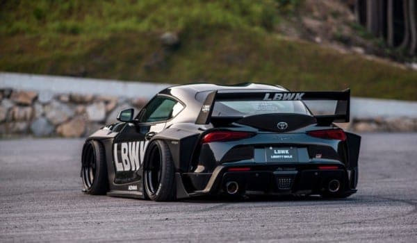 Como se puede ver en las imágenes, este Supra recibe un agresivo paquete de carrocería ensanchado en el que no faltan un alerón de proporciones bíblicas, un segundo spoiler de cola de pato, aletas montadas en los guardabarros, pronunciados faldones, un difusor que quita el hipo o un pronunciado splitter frontal.