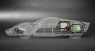 El paquete de baterías de iones de litio de 60 kWh está ubicado detrás del conductor y en los umbrales laterales. Esto mantiene el centro de gravedad bajo y ayuda al GT40 eléctrico a lograr una distribución de peso de 40/60. La del original era de 38/62. También incluye carga rápida y una autonomía superior a los 200 km.
