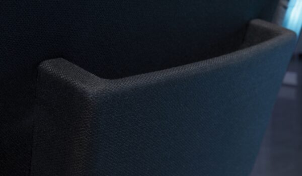 La silla de oficina de Volkswagen Commercial Vehicles no solo traslada la funcionalidad de un automóvil a la oficina; también hace un guiño al futuro de la automoción con un motor eléctrico y una batería de iones de litio extraíble. Gracias a ello, podemos desplazarnos por la ofi a una velocidad máxima de 20 km/h, con una autonomía estimada de 12 km.