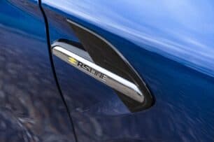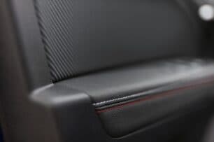 En el interior también se incluyen los asientos más envolventes, tapizado específico con costuras en rojo, volante deportivo «RS-Line», pedales deportivos, umbral de puertas con moldura decorativa, etc. Completa la presentación el guarnecido interior de techo en color oscuro, algo que eleva la sensación de deportividad.