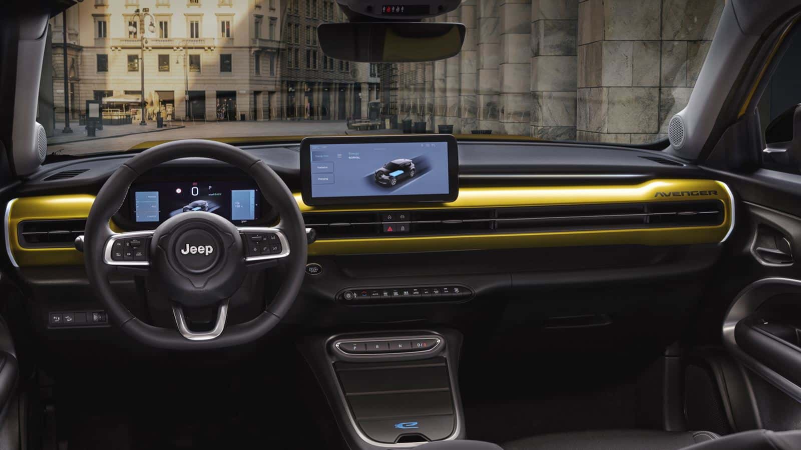 El interior del Jeep Avenger sigue lo principios del “Design to Function”. El diseño interior limpio y robusto, con un salpicadero funcional, está inspirado en la historia de la marca Jeep y particularmente en el Jeep Wrangler.