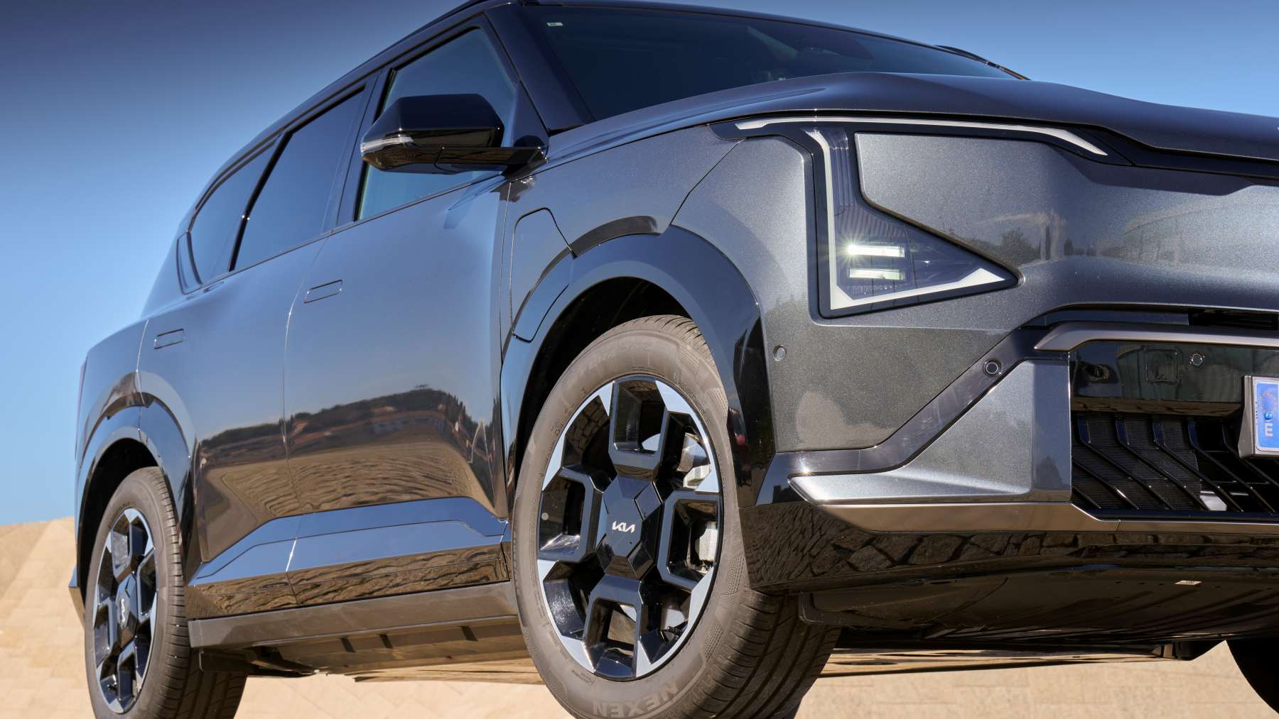 Kia lleva unos años apostando por un lenguaje de diseño muy marcado, ese “Opposites United” con líneas rectas, superficies tensas y formas bastante geométricas. Y el EV5 bebe directamente de esa gran jarra de diseño de la que también beben el resto de modelos de la familia EV. Tanto, que en algunos ángulos parece un EV9 encogido en la lavadora.