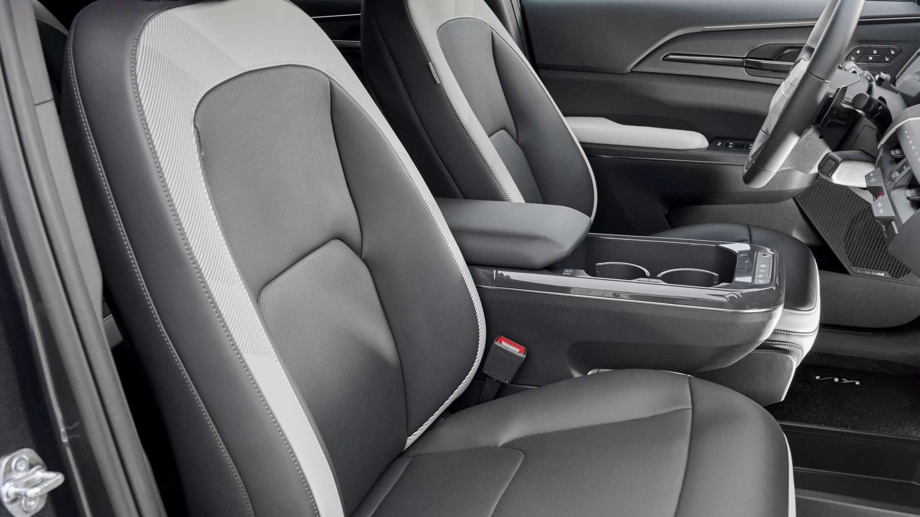 Un detalle interesante es que Kia ha evitado el típico negro piano, ese material que queda espectacular en fotos pero que en la vida real es un imán para huellas, polvo y arañazos. Aquí lo han sustituido por un acabado brillante en tono gris, tipo gloss, que visualmente encaja bien y parece algo más sufrido.