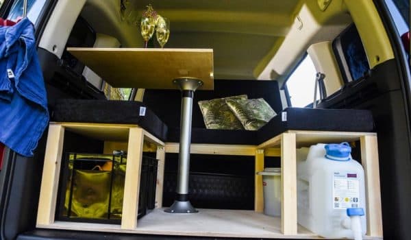 El diseño deslizable de la mesa Fiamma del modelo cuenta con una serie de cajones de almacenamiento y plataformas que se pueden plegar en el maletero sin restar espacio para los ocupantes cuando no está en uso, lo que incrementa su versatilidad y evita que tengamos que andar extrayendo el conjunto para desplazarnos. Por desgracia, no ofrece espacio de cocina integrado como la propuesta de Campal, pero sí espacio suficiente para llevar un equipo de camping gas.