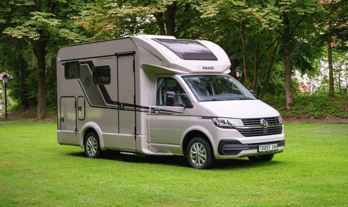 Para el desarrollo del nuevo Knaus Tourer Van la firma ha tomado como base de partida el Volkswagen T6.1 y como buena autocaravana incorpora el «capuchón» de fibra. En total solo mide 5,9 metros de longitud y tiene una altura de 2,8 metros y un ancho ajustado de 2,2 metros. Es por tanto parecido a un Camper Van Gran Volumen.
