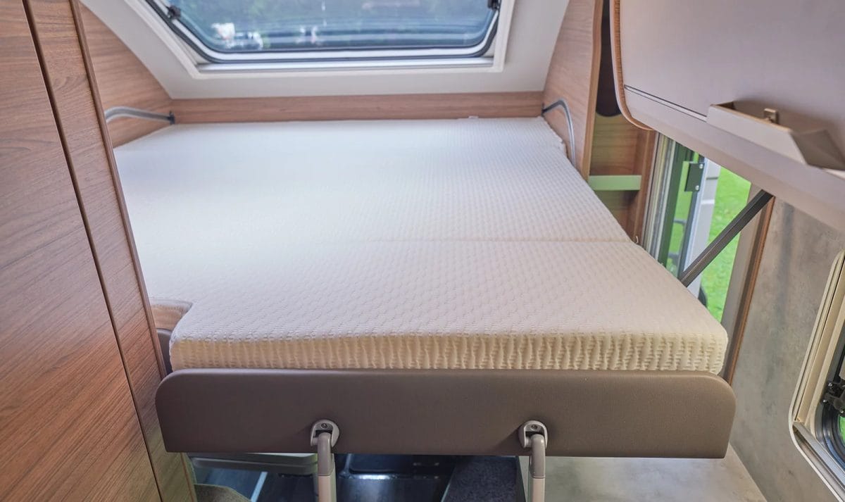 La cama posterior de matrimonio es la que sufre cierta reducción de tamaño cuando la ducha está en uso pero es algo que no debería ser un problema. Bajo está cama además hay que señalar que hay un enorme garaje en el que se pueden meter muchos objetos e incluso bicicletas o un scooter pequeño.