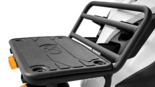 Su chasis ha sido anclado en la parte trasera para conseguir una mayor solidez del conjunto, mientras que en los laterales disponemos de dos extensiones que nos permiten fijar aún más carga. En su versión española equipa los mismos elementos de seguridad del resto de la gama, con llantas de 12 pulgadas, un disco delantero ahora de 220 milímetros y una pinza de tres pistones. En la trasera el disco es de 200 milímetros para asegurar una mayor efectividad del sistema de frenos combinados CBS.