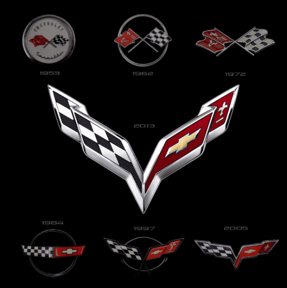 El logotipo de las banderas cruzadas ha sido el emblema del Corvette desde su introducción en 1953. Siempre ha llevado un par de banderas, una a cuadros de carreras y otra con la pajarita de Chevrolet y una flor de lis francesa. El diseño ha evolucionado con el paso de los años y ha lucido en más de 1,5 millones de deportivos Corvette fabricados desde 1953 hasta nuestros días.