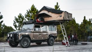El capó, los guardabarros y otros elementos están pintados en negro satinado para darle un toque más robusto al conjunto. Quizás el elemento más llamativo es la tienda de campaña instalada sobre el techo, que permite a una pareja dormir sin necesidad de tocar el suelo. Tampoco falta un brazo de ducha exterior para refrescarse al final del día.