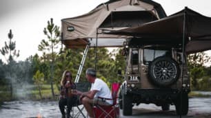 Un toldo extensible brinda a los aventureros protección contra el sol o las inclemencias del tiempo a la hora de relajarse, mientras que numerosos accesorios hacen posible la supervivencia fuera de la civilización. Es el caso de los paneles de recuperación ARB y el cabrestante Warn, ambos muy útiles si te quedas atascado en el barro.