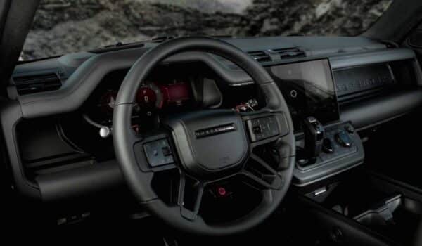 El nuevo Defender OCTA Black llama la atención con su paleta monocromática basada en el Narvik Black, el tono más profundo de Land Rover, que puede complementarse con una película protectora mate opcional. Este modelo redefine el término “presencia imponente” con hasta 30 elementos exteriores en acabado Gloss Black o Satin Black, incluyendo la parrilla, las placas antimarcas, el sistema de escape cuádruple y el gancho de remolque eléctrico.