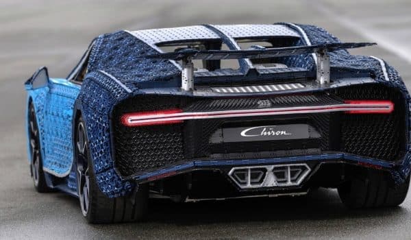 En su exterior se han utilizado segmentos triangulares interconectados para construir toda la carrocería, imitando así el cuerpo original del Chiron. Pero si nos adentramos en su habitáculo nos sorprenderá el nivel de detalle y acabados que se han conseguido tan solo con unas piezas de LEGO, desde el tablero de instrumentos, el volante o hasta los asientos, todo es exactamente igual que en el Bugatti Chiron.