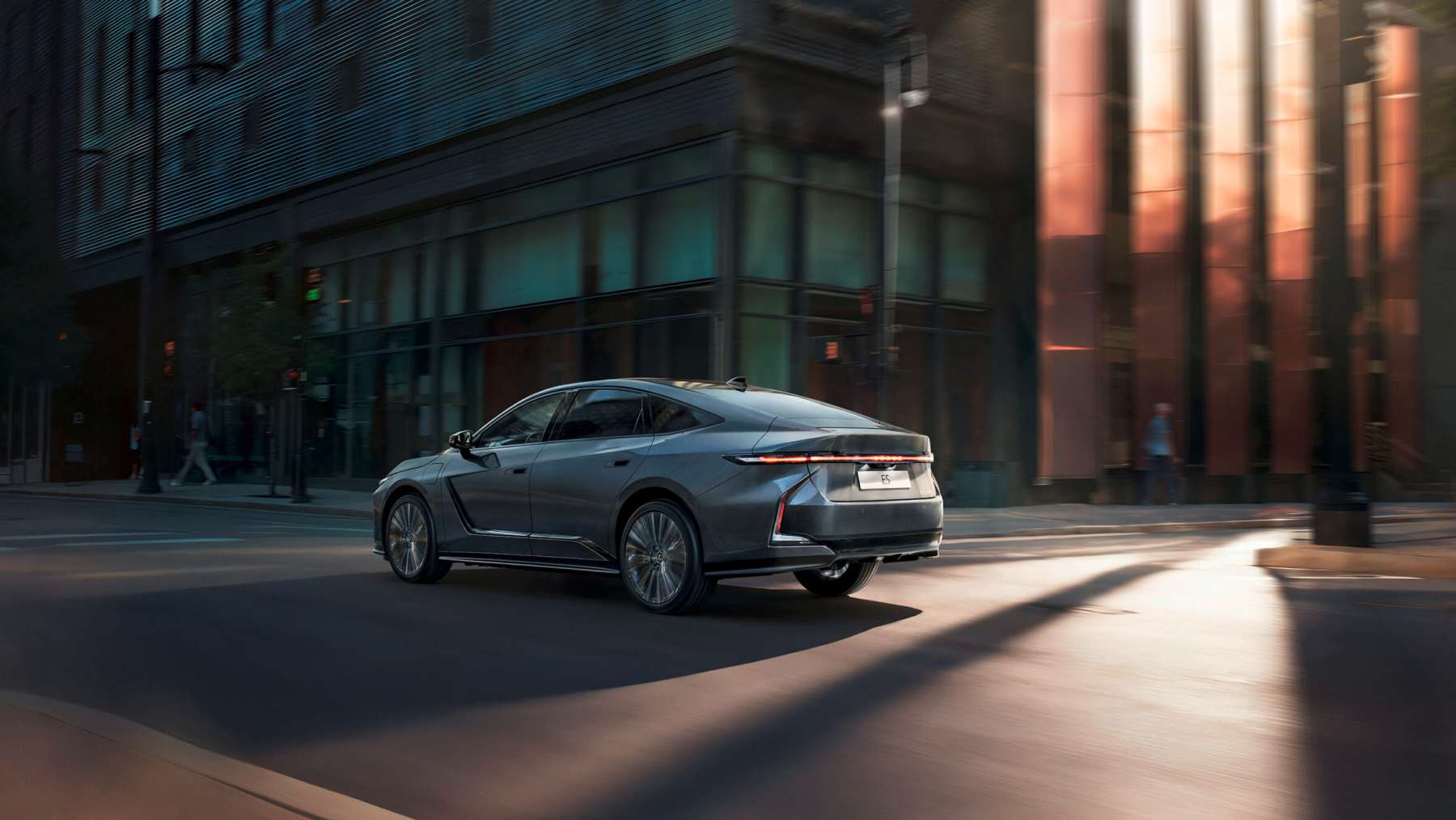 El nuevo ES apuesta por una silueta tipo fastback, con un techo que cae suavemente hacia la parte trasera, donde se apoya sobre los hombros y los pasos de rueda del eje trasero. Esto le da un aire mucho más dinámico, más moderno.