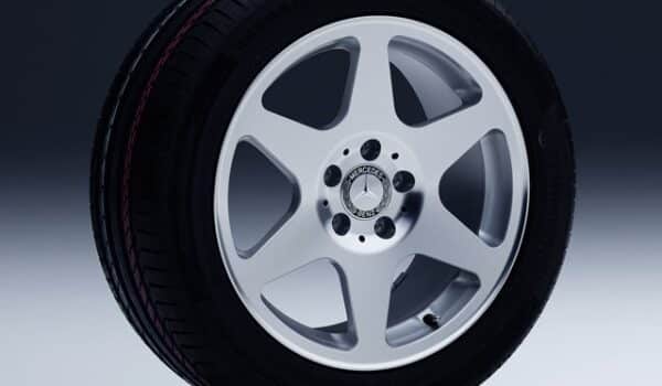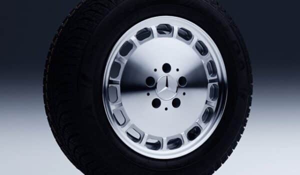 En la década de 1980, Mercedes-Benz desarrolló llantas de aleación minimalistas de 15 y ocho orificios. La llanta de superficie completa se utilizaron en todos los modelos de serie, incluido el 190 E 2.3-16, el Mercedes-Benz más dinámico de la época. El “Baby Benz”, tal como era apodado cariñosamente, rápidamente se convirtió en otro vehículo de culto.