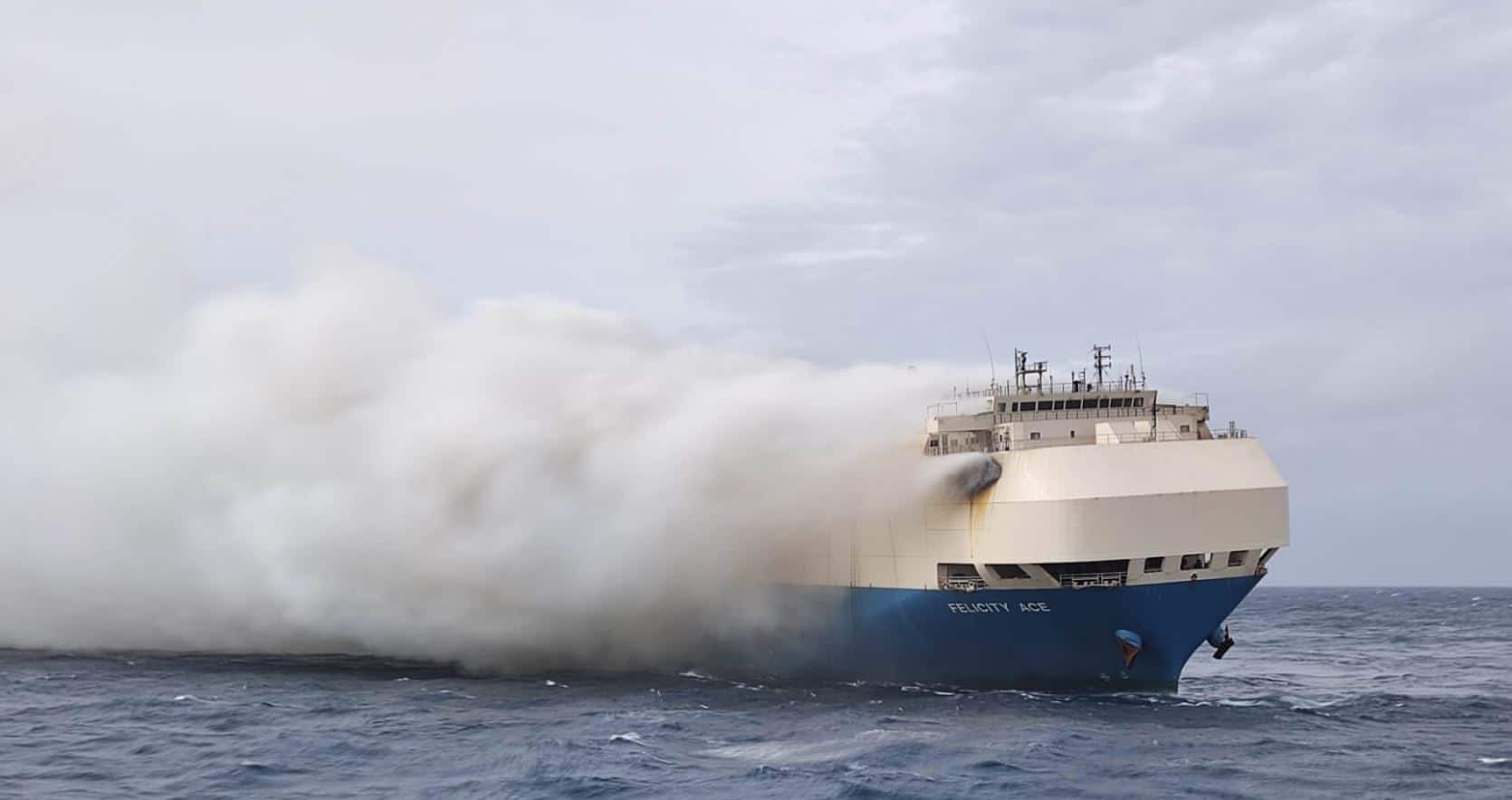 Aunque parecía todo más o menos controlado y que el incendio había cesado, el buque de transporte de vehículos Felicity Ace finalmente se hundió en el Océano Atlántico con centenares de coches en sus bodegas.