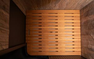 La verdadera transformación comienza en la zona habitable. Materiales premium como la piedra natural en el baño, superficies de Corian en la cocina y detalles en bambú elevan la experiencia a un nivel muy premium. La iluminación LED indirecta, la ventilación forzada y la integración de un inodoro seco EcoKlos refuerzan la apuesta por el confort.