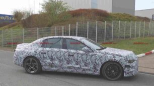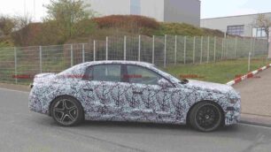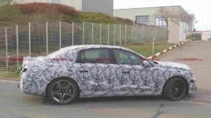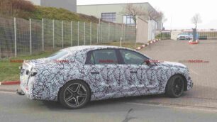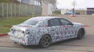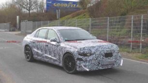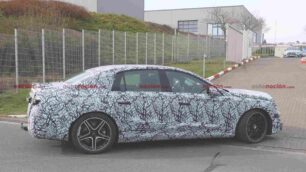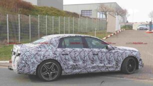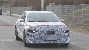 Lo que se está viendo en Nürburgring apunta a un desarrollo temprano, pero con detalles que dejan entrever unos pasos de rueda ensanchados, llantas AMG, un faldón delantero más bajo y un alerón trasero funcional.
