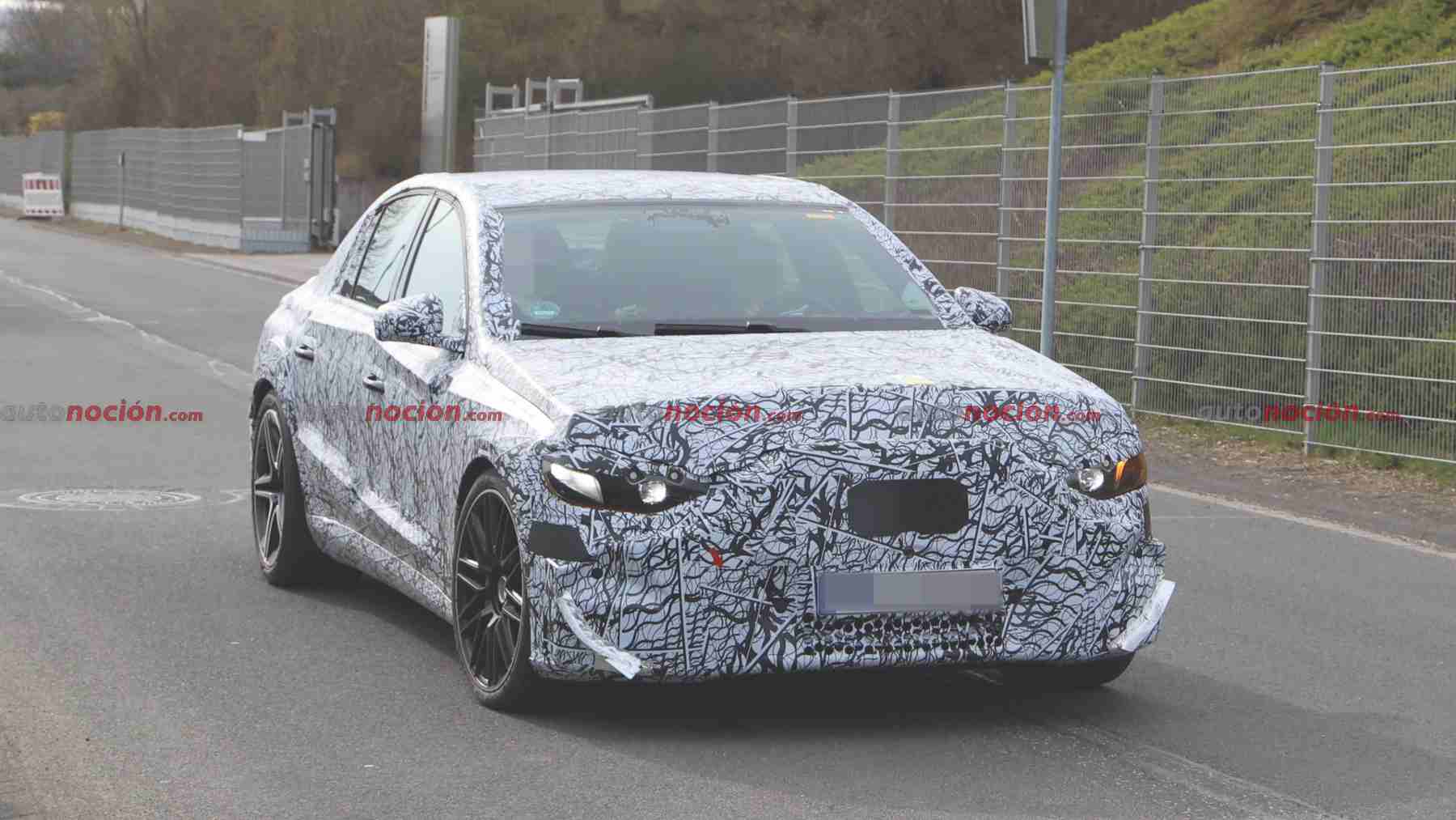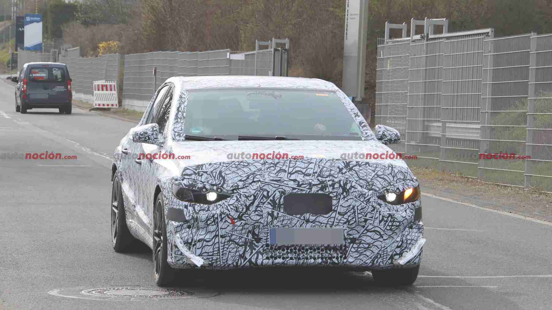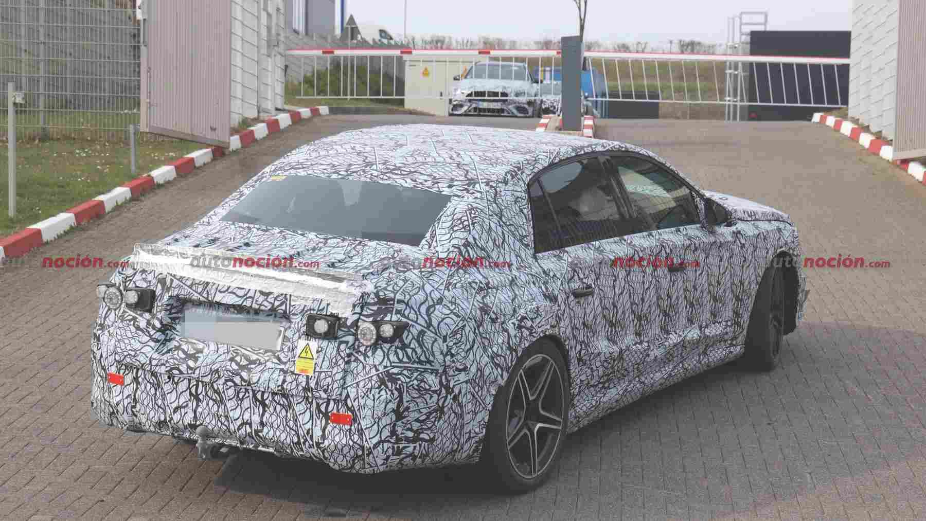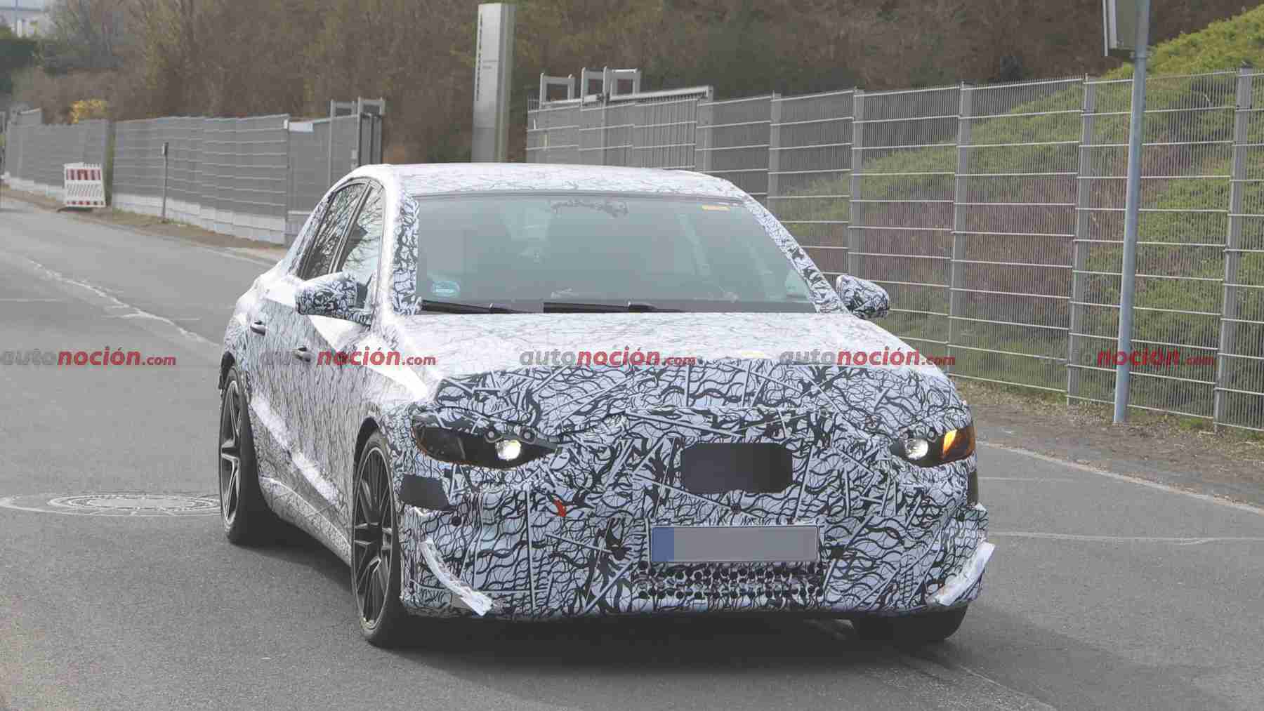Lo que se está viendo en Nürburgring apunta a un desarrollo temprano, pero con detalles que dejan entrever unos pasos de rueda ensanchados, llantas AMG, un faldón delantero más bajo y un alerón trasero funcional.