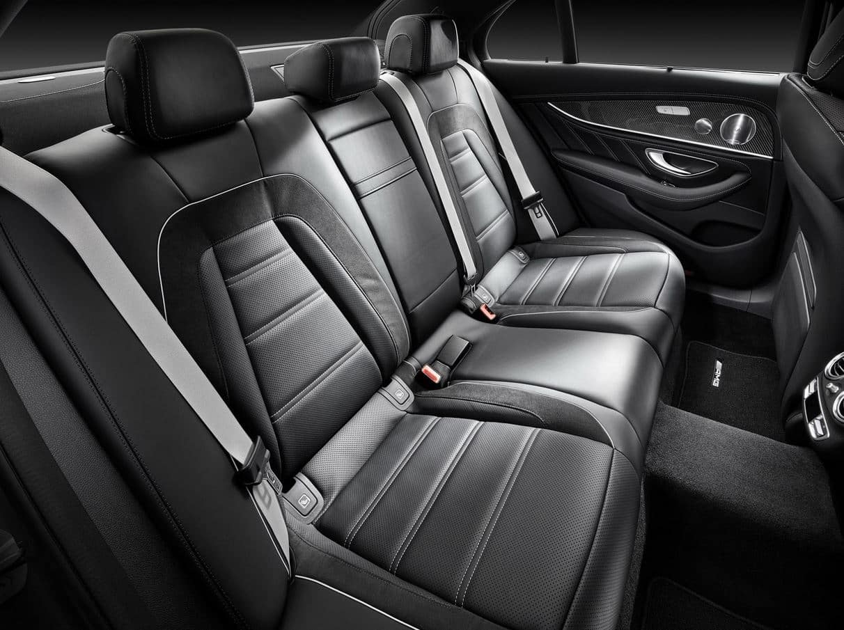 – El sistema de frenos de alto rendimiento de gran tamaño desacelera la berlina de forma fiable y rápida y es resistente a la decoloración y al calor. Los E 63 + 4MATIC monta discos autoventilados y perforados de tamaño 360×36 mm en la parte delantera con pinzas fijas de seis pistones y discos 360×24 mm con un solo pistón en el eje trasero. El E 63 S 4MATIC + está equipado con discos de frenos compuestos de tamaño 390×36 mm. Para la variante más potente, el sistema de frenos carbocerámico AMG está disponible como una opción con discos de freno en tamaño de 402×39 mm en el eje delantero y 360×32 mm en el eje trasero.
