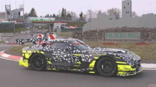 Aunque esta semana nevó en Nürburgring, lo que no es lo ideal para pruebas a alta velocidad, el equipo de AMG no ha parado de trabajar. Nuestros fotógrafos nos han comentado que están muy ilusionados por ver cómo evoluciona el coche en los próximos meses, especialmente cuando AMG consiga tiempos de referencia en el trazado más exigente del mundo.