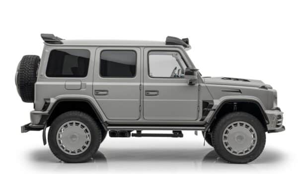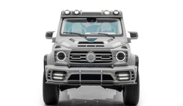 El preparador ha dotado al modelo de una protección ubicada en el parachoques y montada delante del faldón trasero que en el color de la carrocería y con cuatro faros auxiliares LED montados en el techo completan el aspecto 4×4 del «MANSORY Gronos «.