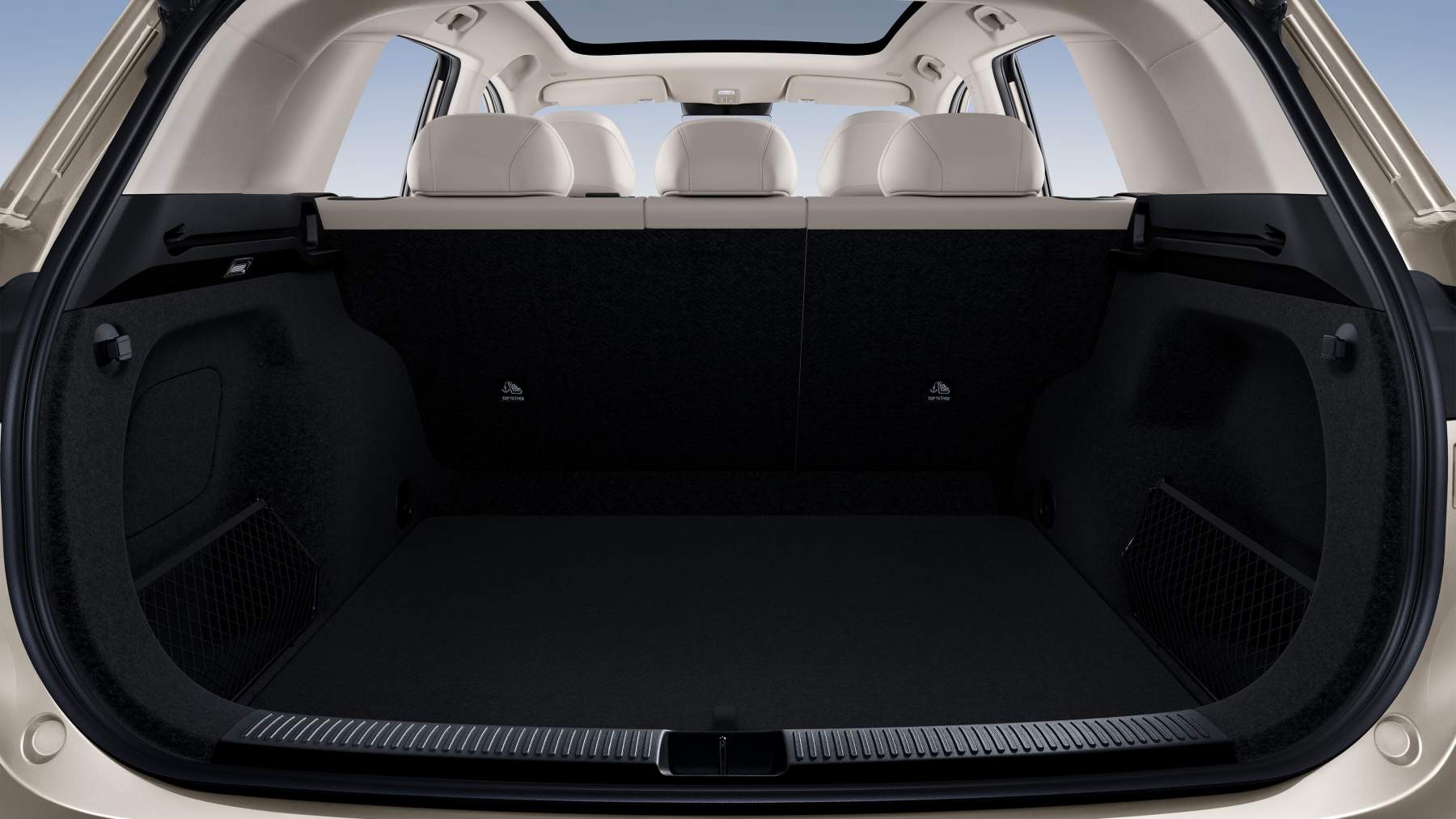 El techo panorámico fijo de 1,96 metros cuadrados, con cortinilla eléctrica, aporta luminosidad al habitáculo y refuerza la sensación de amplitud. En cuanto a la capacidad de carga, el maletero alcanza 674 litros, que pueden ampliarse hasta 1.910 litros con los asientos traseros abatidos. A ello se suma un compartimento delantero de 124 litros.