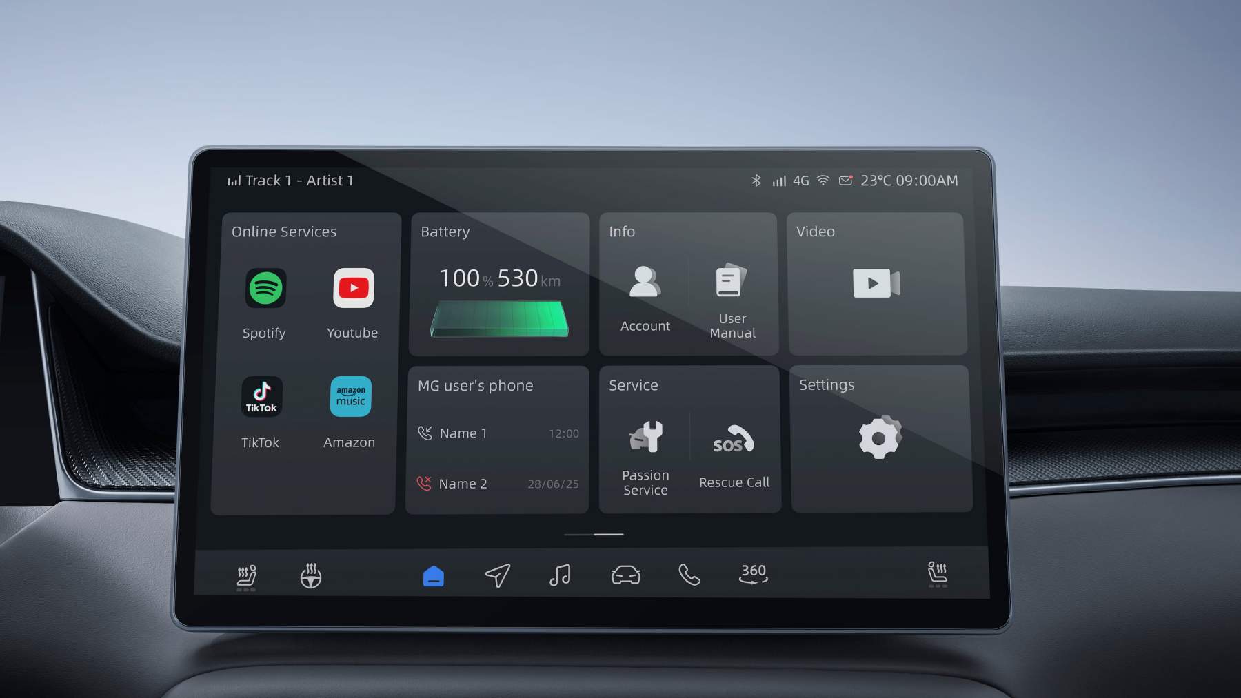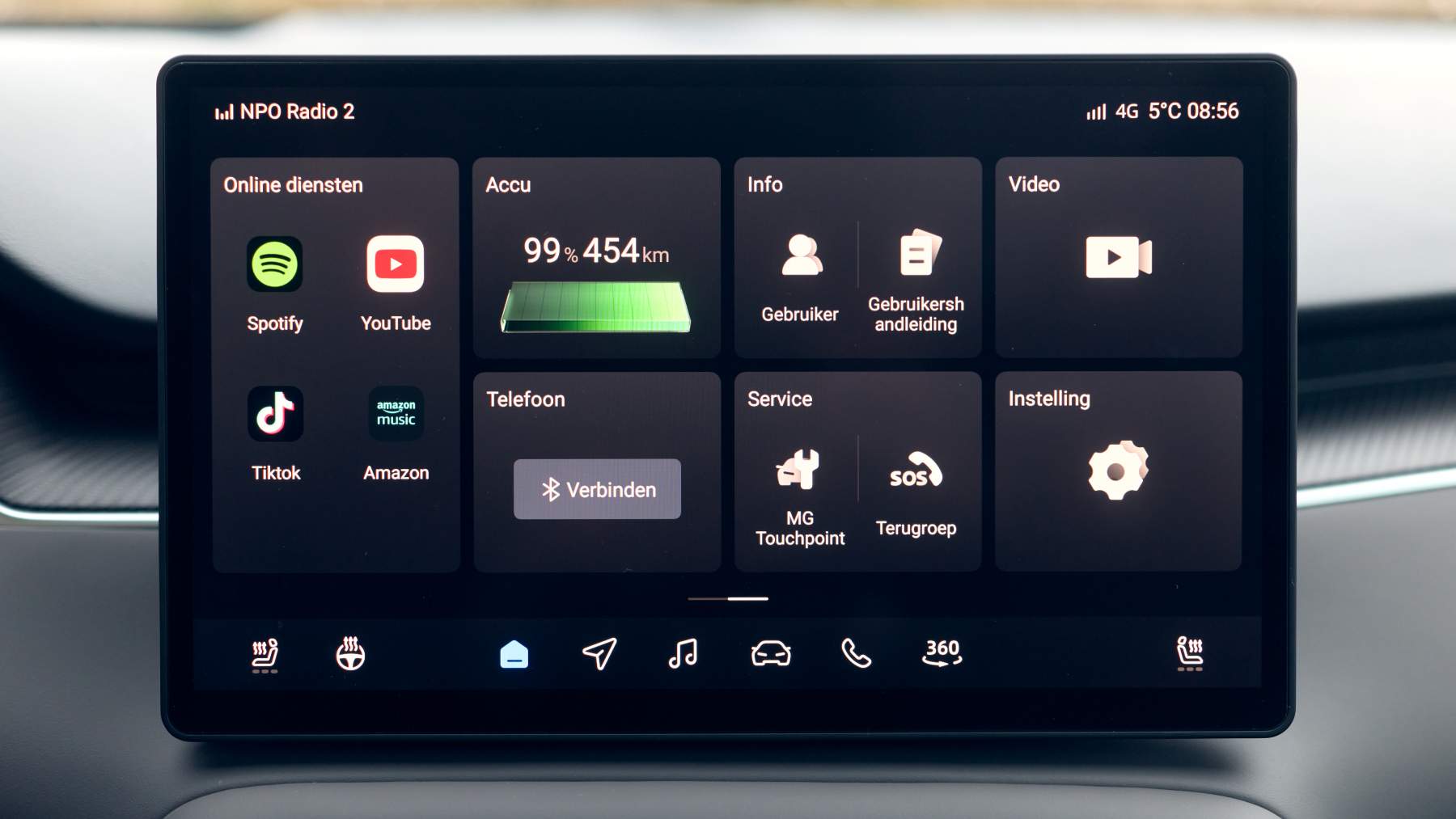 El sistema multimedia incluye servicios conectados en tiempo real, con información de tráfico, meteorología y acceso a plataformas de entretenimiento como YouTube, Spotify, TikTok o Amazon Music. También integra un planificador de rutas pensado para viajes en vehículos eléctricos.