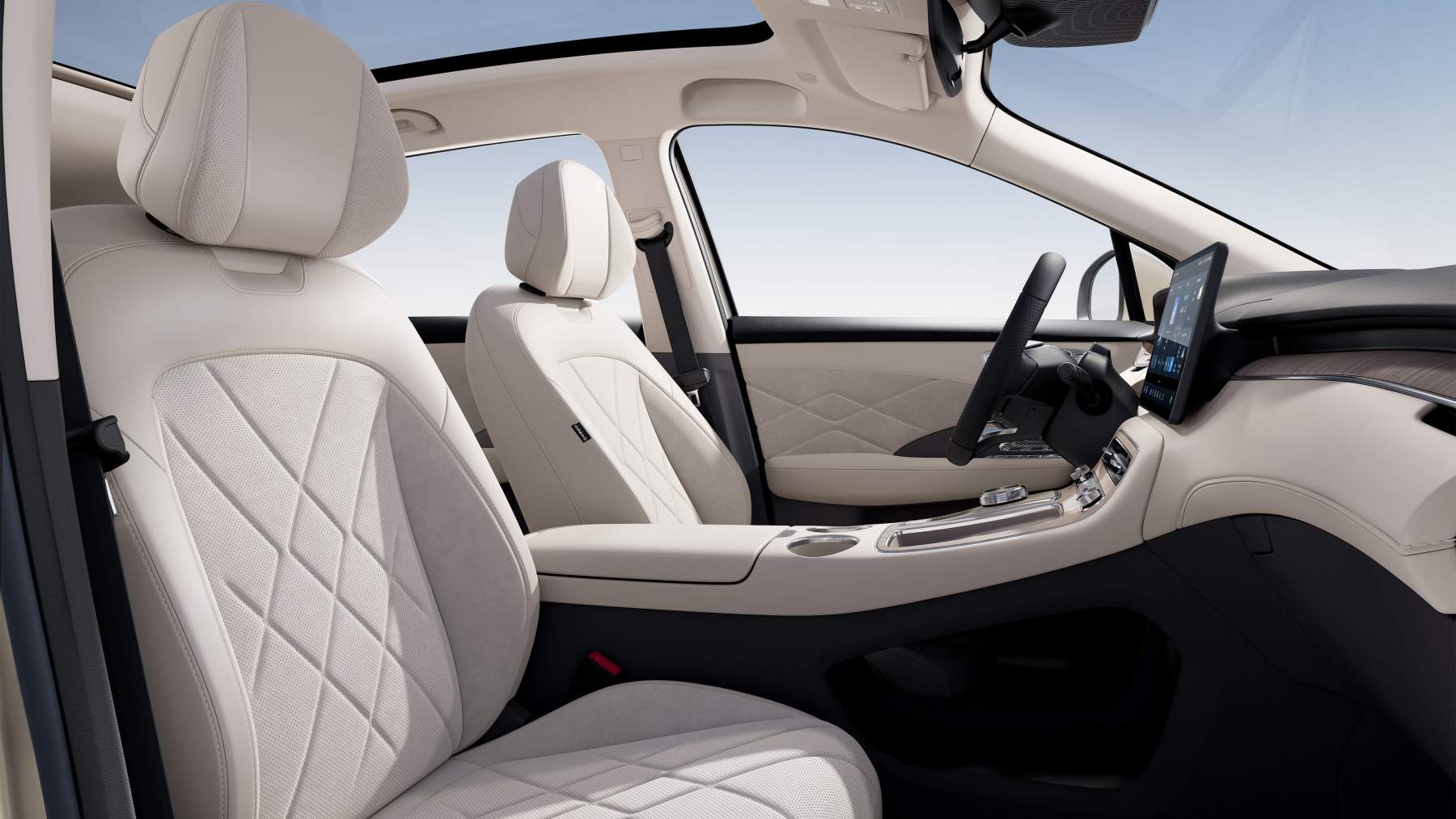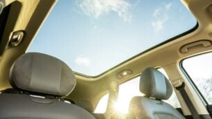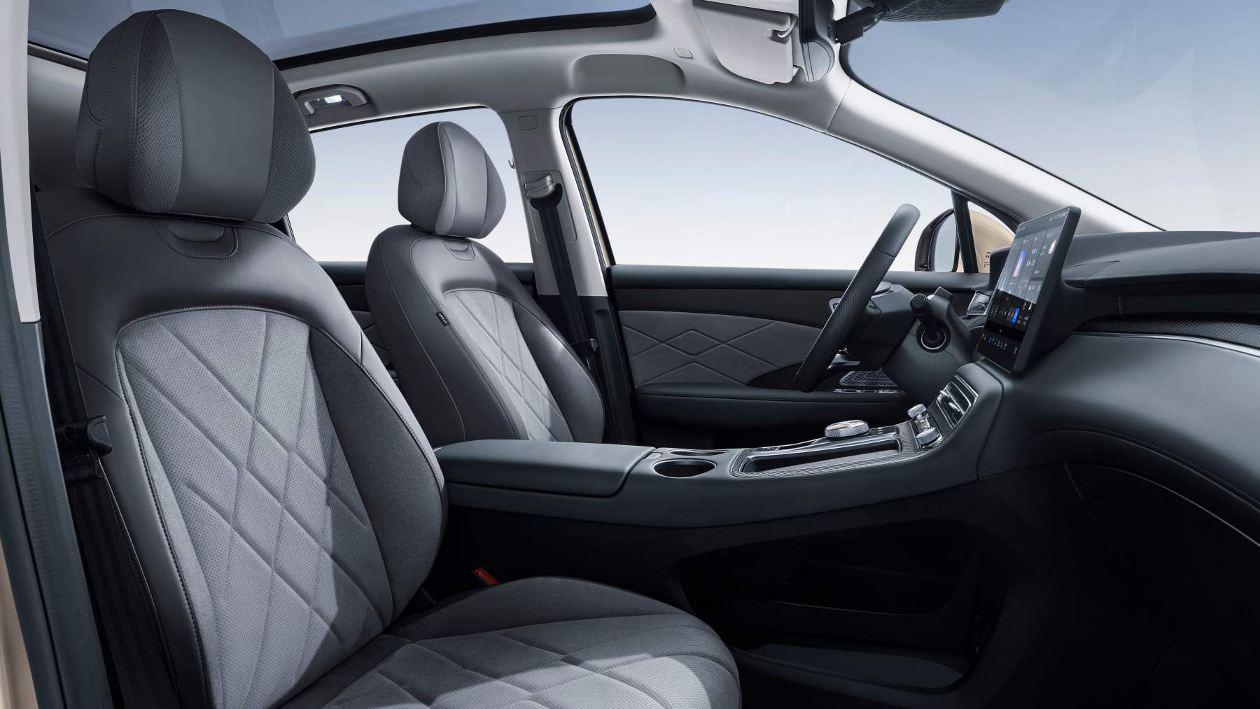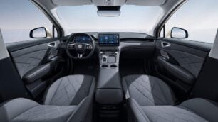 El interior ofrece espacio para cinco ocupantes y destaca por la amplitud en anchura, altura y espacio para las piernas. Los asientos combinan cuero ecológico gris y ante con detalles de efecto carbono, y todos los ocupantes disponen de asientos calefactados, mientras que los delanteros añaden ventilación y regulación eléctrica.
