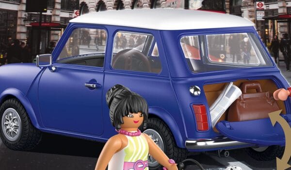 El coche clásico y el milagro espacial de Gran Bretaña ahora tiene su réplica a escala en Playmobil con figuras y accesorios de una escena londinense de los años 70.