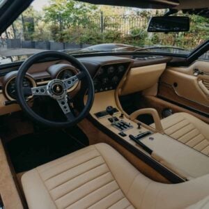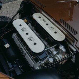 En el interior, se recuperó la preparación para el aire acondicionado, se reinstalaron las luces de emergencia, se montó un volante más compacto y se colocó la palanca de freno de mano alargada. La pintura exterior recuperó su elegante tono “Luci del Bosco” (un marrón muy característico), combinado con un interior en color “Senape”. Esta combinación exigió un estudio cromático exhaustivo, ya que el tono evolucionó ligeramente a lo largo de los años en los diferentes modelos de la marca.
