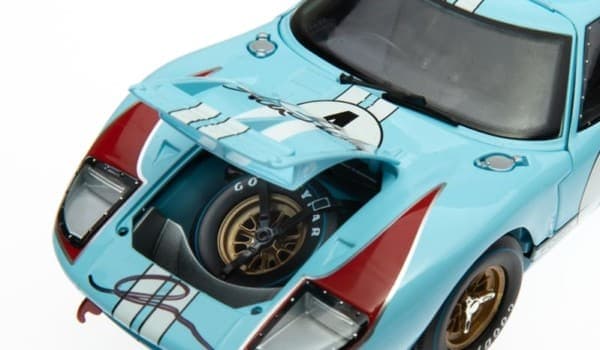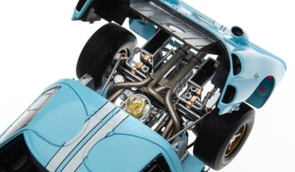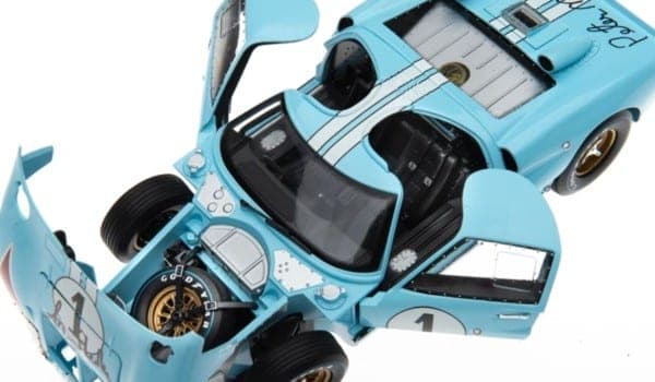 Este GT40 MkII a escala que os traemos hoy es una recreación del automóvil que Miles condujo tanto en Le Mans como a la victoria en Daytona ese año. Impulsado por un motor Ford 427, se decía que alcanzaba velocidades unos 346 km/h.
