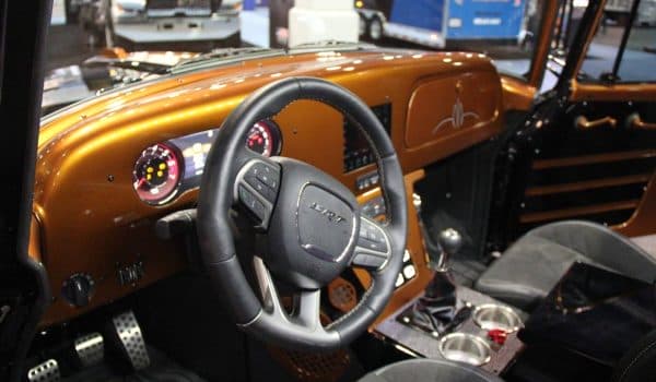 Su motor sobrealimentado es un HEMI V8 de 6.2 litros que desarrolla un total de 717 CV de potencia y 950 Nm de par motor. A este se le ha acoplado una transmisión NV5600 de seis velocidades. En su interior la mezcla es cuanto menos curiosa, una combinación de elementos antiguos y modernos -por ejemplo el volante de un SRT junto con diversos elementos importados directamente de Dodge, un par de asientos de cuero Nappa o incluso un botón de arranque sin llave.
