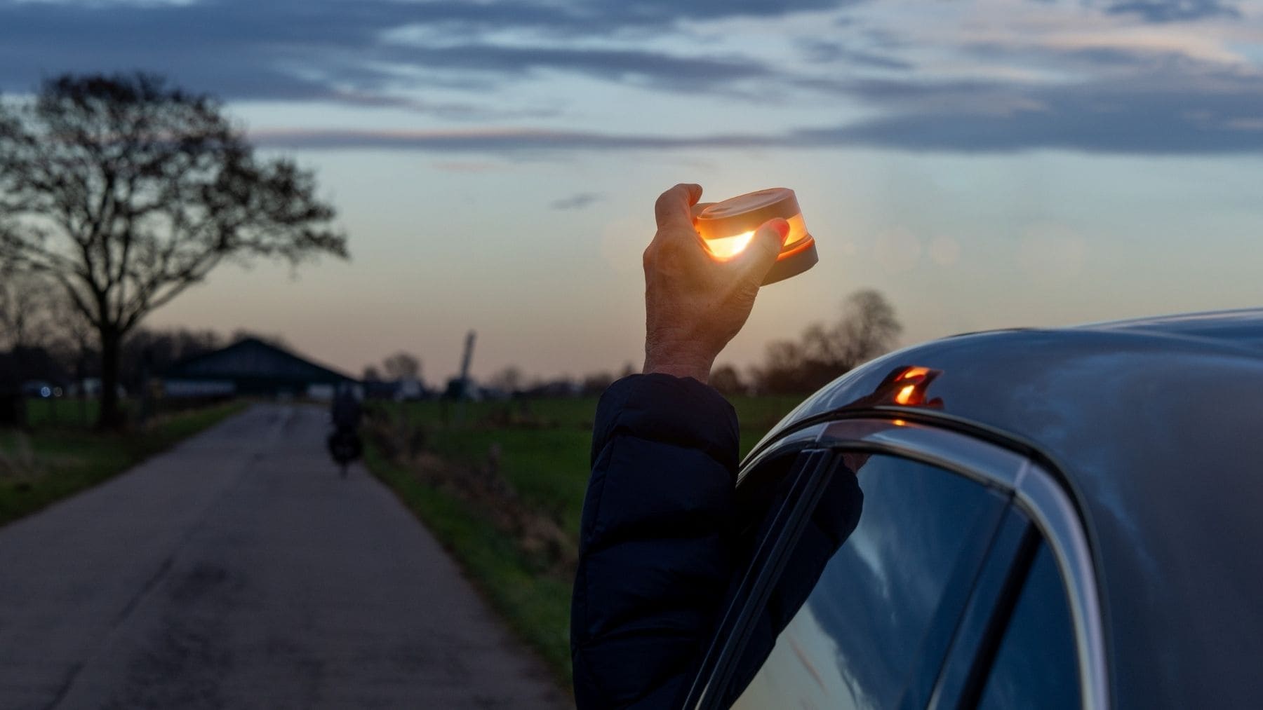La baliza V-16 de noche