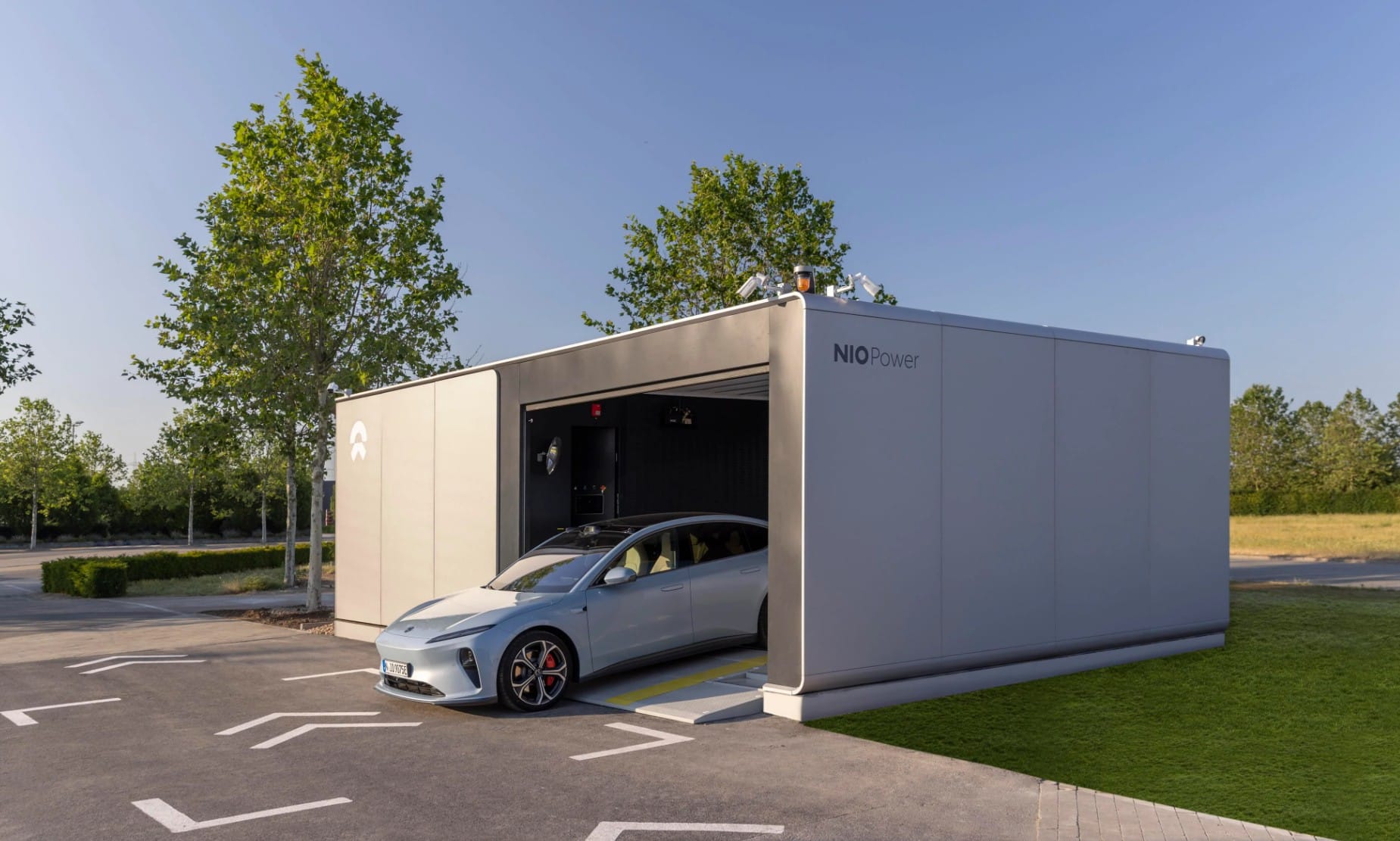 La tecnología Power Swap que Nio lanzó en Europa en 2022, ofrece una alternativa a la carga tradicional mediante enchufes. Las estaciones de intercambio de baterías permiten realizar cambios automáticos de baterías en tan solo tres minutos, lo que la hace más rápida que el repostaje convencional.
