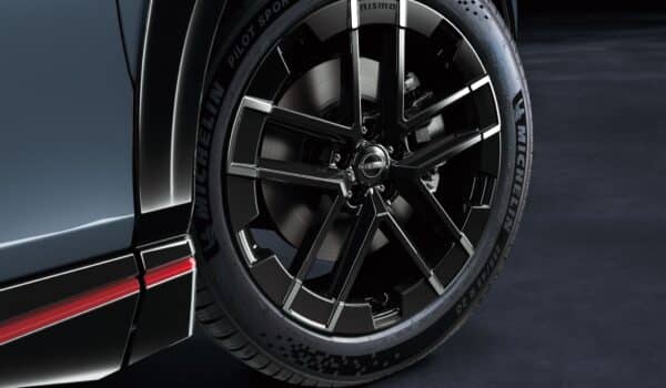 El e-4ORCE ajustado por NISMO maximiza el rendimiento de los sistemas de suspensión delantera y trasera, garantizando la máxima tracción en cualquier clima, sin perder nada de su precisión. También proporciona una conducción de precisión al mejorado sistema de frenos del que Nissan sólo nos ha subrayado sus «pastillas de freno ajustadas», algo que no hemos entendido muy bien.