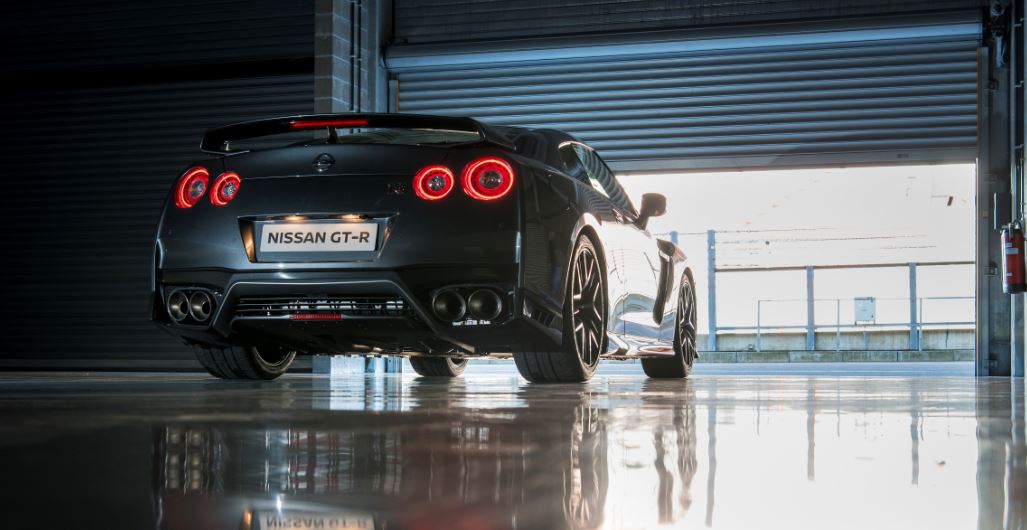 – La parte trasera del nuevo GT-R continúa montando las redondas luces traseras y los cambios han afectado a la cuádruple salida de escape de titanio. Además, la línea de cintura que separa la parte inferior del panel negro trasero se ha ampliado para redireccionar mejor el aire en la parte inferior de la parte trasera del vehículo.