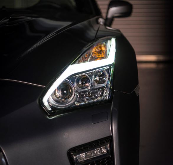 – El nuevo GT-R cuenta con un aspecto exterior completamente renovado. Como punto destacado se monta un nuevo parachoques delantero, nuevas luces de circulación diurna (DRL), y una nueva parrilla en cromo mate. El nuevo diseño de la rejilla también es funcional y aumenta el flujo de aire sin empeorar la aerodinámica. Además de esto, el nuevo capó interactúa a la perfección con la rejilla, cuenta con más rigidez y una nueva forma que mejora considerablemente el rendimiento aerodinámico en la parte delantera del vehículo a alta velocidad (200 km/h o más).