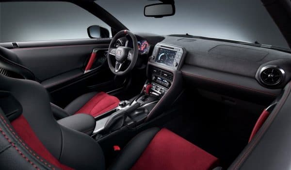 En el interior se ha optado por el refinamiento sin renunciar con ello a la deportividad extrema. El renovado Nissan GT-R Nismo proporciona un grado máximo de confort, lujo y facilidad de uso gracias a detalles como el nuevo tablero de instrumentos y el volante tapizados con cuero Nappa, los asientos deportivos de carbono obra de Recaro rematados en cuero y Alcántara, una nueva consola que proporciona un entorno orientado al conductor o un diseño del cuadro de mandos mejorado y simplificado.