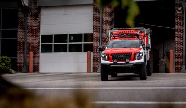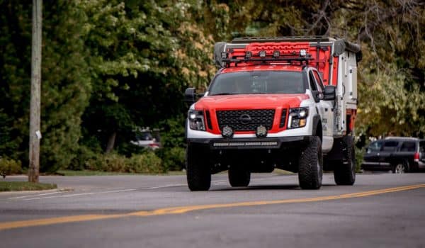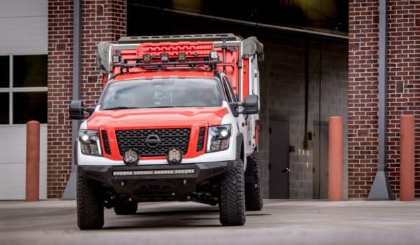 Para su construcción se ha tomado el Titan XD Diesel Midnight Edition, sustituyendo la caja del pick-up por un módulo añadido de grandes dimensiones. La nueva caja diseñada por Rockit West, alberga un centro de operaciones móvil y todos los accesorios necesarios para enfrentarse a cualquier situación de emergencia. En el interior de la cabina encontramos un interior personalizado de Goose Gear con un escritorio, un sofá, cocina móvil, estufa, fregadero, microondas, paneles solares y hasta una cama.