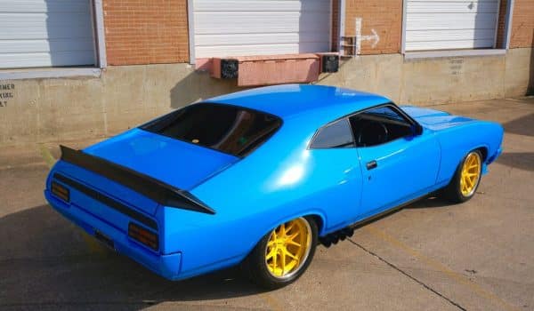 ¿Recordáis el Ford Falcon coupé que Mel Gibson conducía en Mad Max? Pues hoy os voy a hablar de uno bastante similar, aunque quizá este sea ligeramente más hortera por su llamativa pintura azul pitufo exterior y sus llantas rematadas en color amarillo. Esta pintoresca puesta a punto es obra de RHD y ha sido desarrollada sobre la base de un australiano Ford Falcon XC coupé de 1976 -el de Mad Max era un XB-.