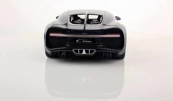 Los detalles están acabados a la perfección, desde la impresionante zaga con la firma «Chiron» y su enorme difusor que alberga el doble escape hasta las llantas y los frenos en color azul, se ha trabajado para que a pesar de ser una reproducción a escala 1:18 pueda pasar perfectamente por el superdeportivo original.