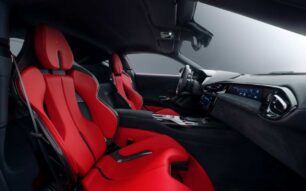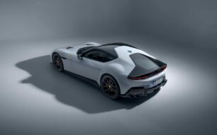 Otros detalles de fibra de carbono incluyen las salidas de aire en el capó, los paneles delante del parabrisas, las inserciones detrás de los arcos de las ruedas delanteras, las cubiertas para los espejos retrovisores y los difusores traseros, lo que refuerza el diseño agresivo y de competición del vehículo.