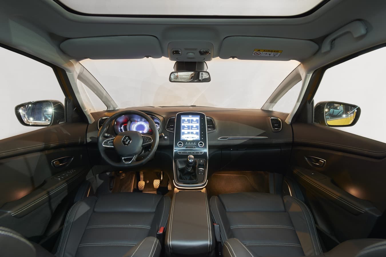 Entre otras cosas el nuevo Scénic lucirá unos acabados mucho más cuidados que en la generación actual, haciendo uso de plásticos acolchados de mejor aspecto. También destaca la enorme pantalla táctil de la consola central, la posibilidad de incluir el Head Up Display y los muchos huecos porta-objetos repartidos por todo le habitáculo.