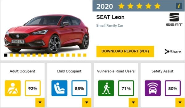Entre los «agraciado» nos encontramos al nuevo Audi A3 Sportback, al nuevo SEAT León, al ISUZU D-Max, al Kia Sorento y al Land Rover Defender que alcanzan el máximo de cinco estrellas. El Honda e se conforma con cuatro estrellas y el Hyundai i10 obtiene tres.