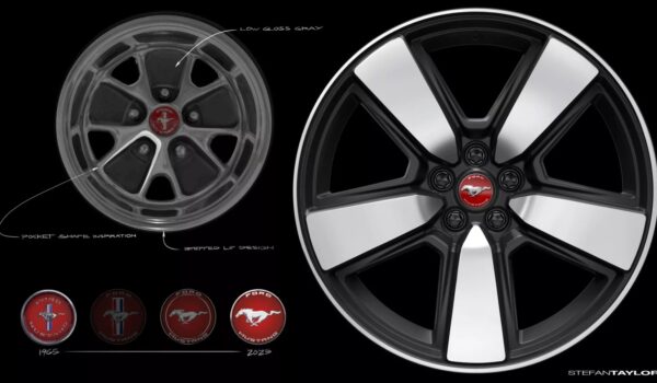 Están disponibles en Iconic Silver o Vermillion Red. A ello se suma una nueva parrilla con diseño de malla y los faros ahumados del paquete Mustang Nite Pony. La paleta de colores incluye los modernos Race Red o Vapor Blue, pero también el clásico Wimbledon White. Con este tono, los espejos retrovisores van en color blanco, pero en rojo y azul van en plata, como en el primer Mustang.